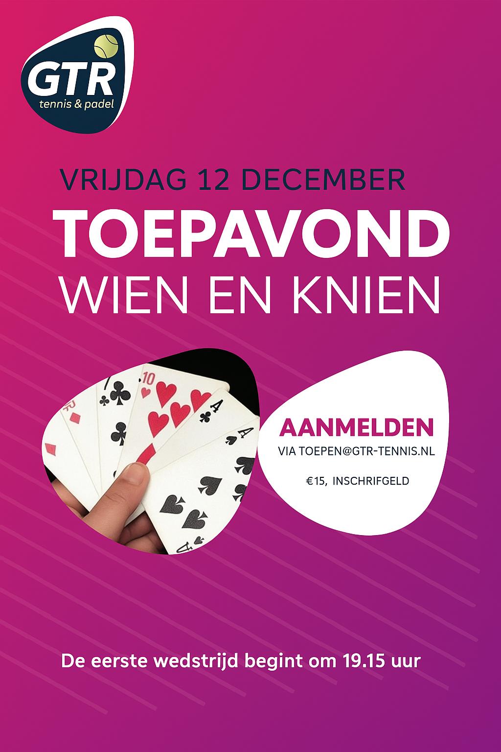 Onder leiding van Maikel Schuffelen en Marcel Bisschops kunnen maximaal 50 speelsters of spelers strijden om de uiteindelijke hoofdprijs: de eer, GTR Toepkampioen 2025, en een super flinke Kerst Kalkoen.